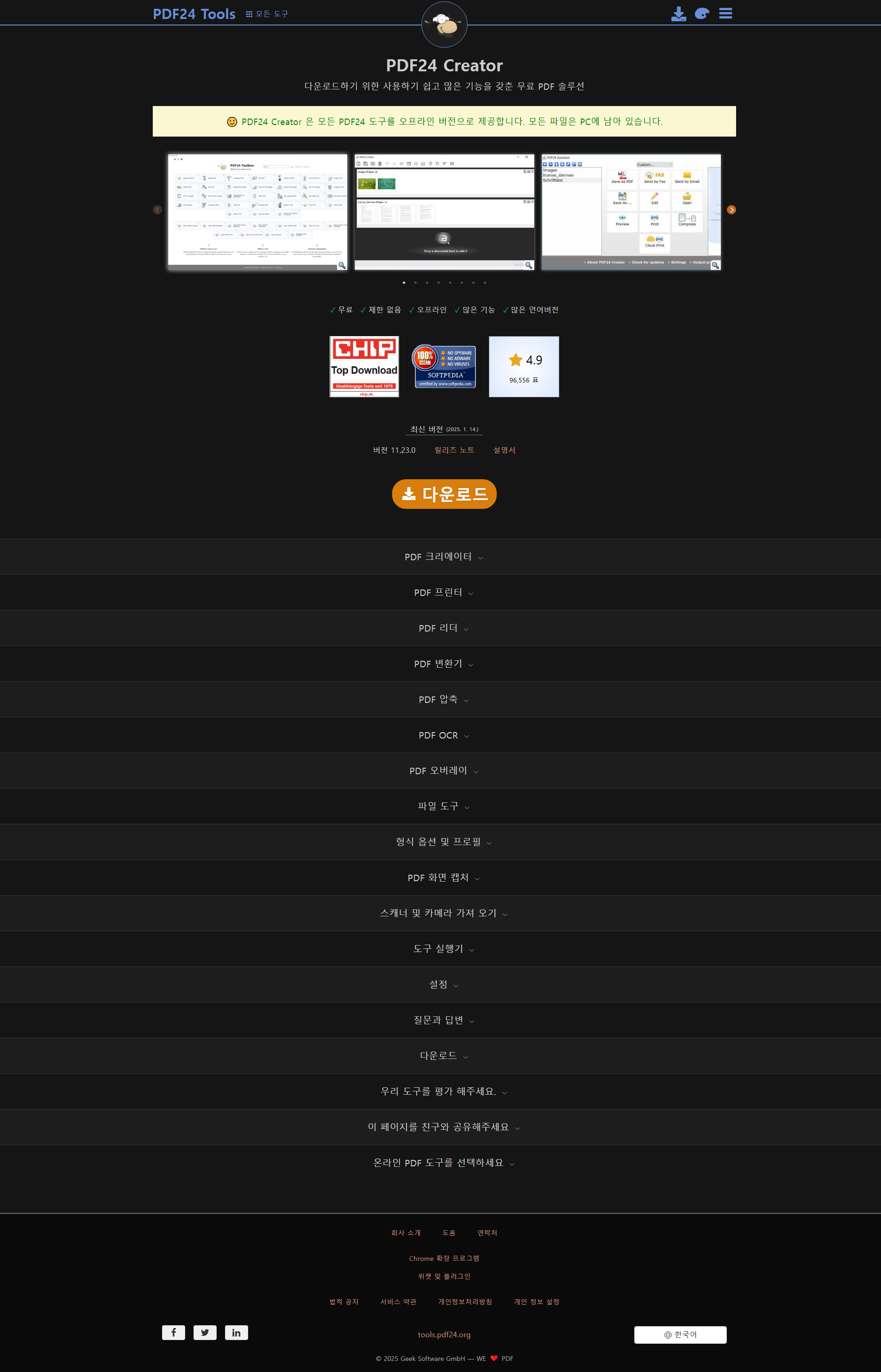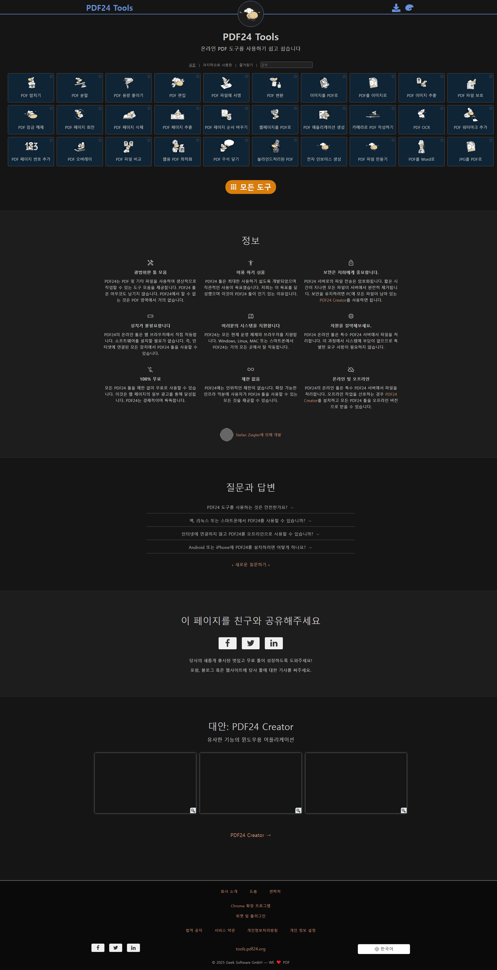 PDF를 병합, 압축, 작성, 편집 및 변환할 수있는 무료 온라인 PDF 도구입니다. 빠르고 쉬운. 설치하지 않고. 등록하지 않고.
